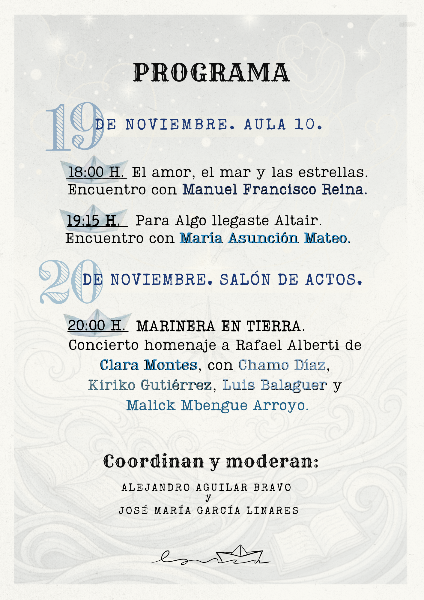 👥 Coordinan y moderan Alejandro Aguilar Bravo y José María García Linares.