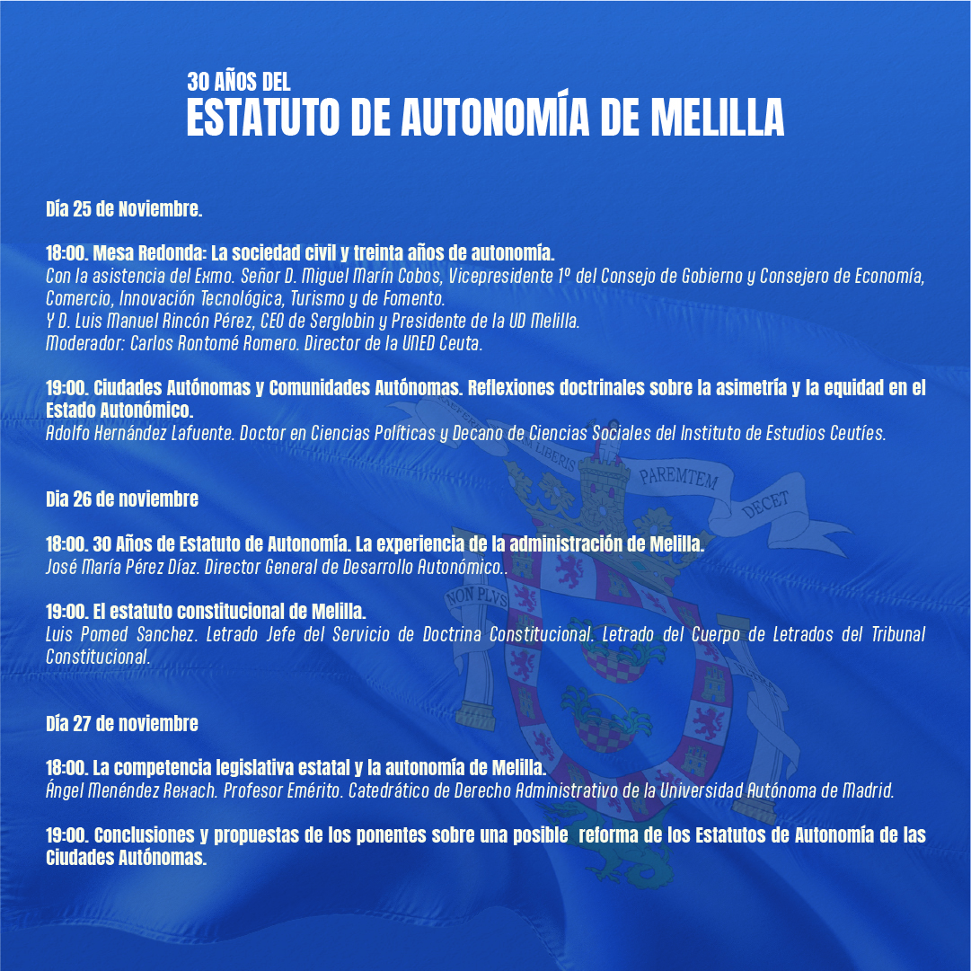 Jornadas 30 años del Estatuto de Autonomía de Melilla Jornadas 30 años del Estatuto de Autonomía de Melilla 📅 25, 26 y 27 de noviembre de 2025 🏦 #UNEDMelillaTwitter