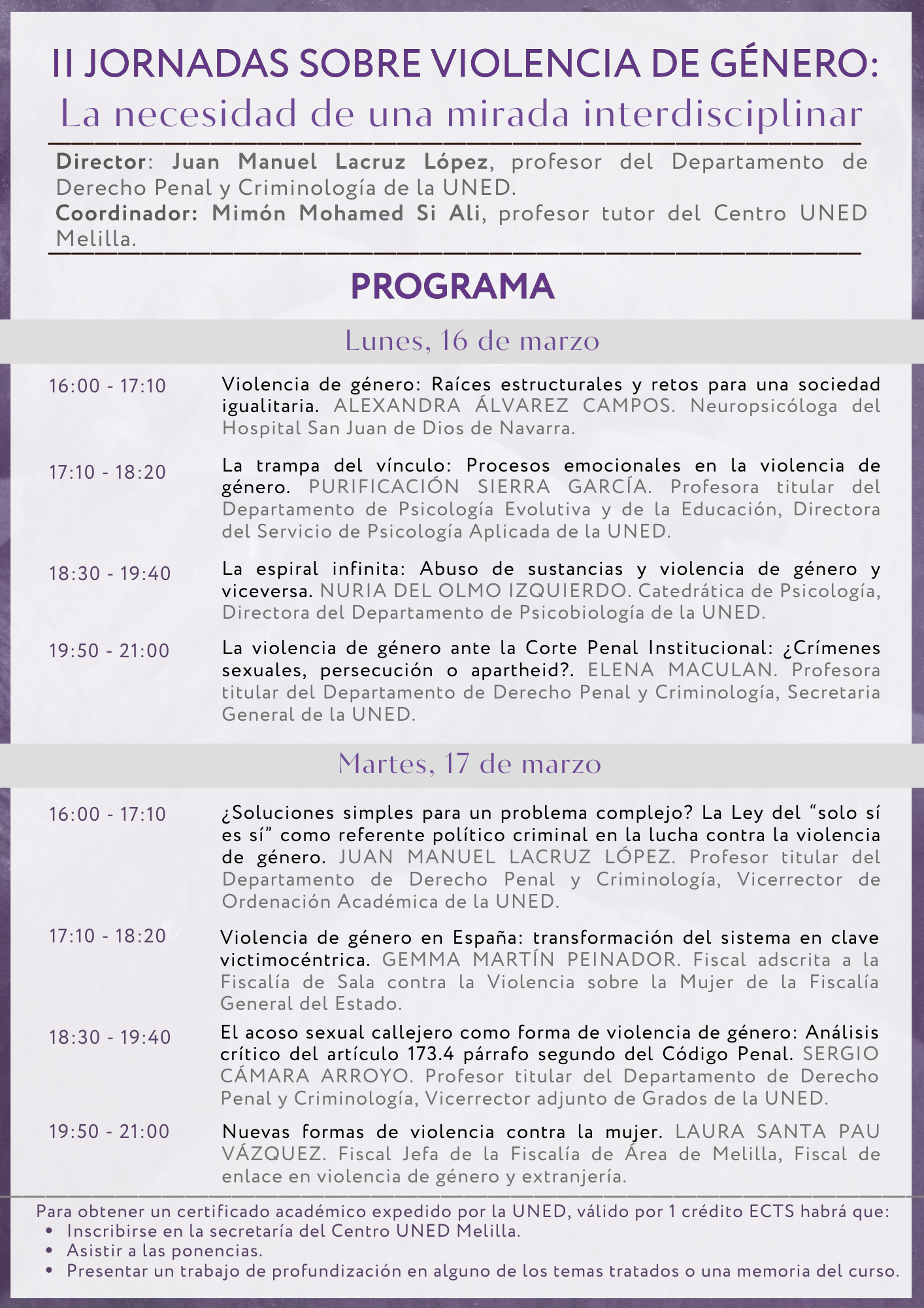 II JORNADAS SOBRE VIOLENCIA DE GÉNERO: La necesidad de una mirada interdisciplinar. 📅 16 y 17 de marzo de 2026 ⏰ 16:00 a 21:00 Horas 🏛️Aula 10 🏦#UNEDMelillaTwitter