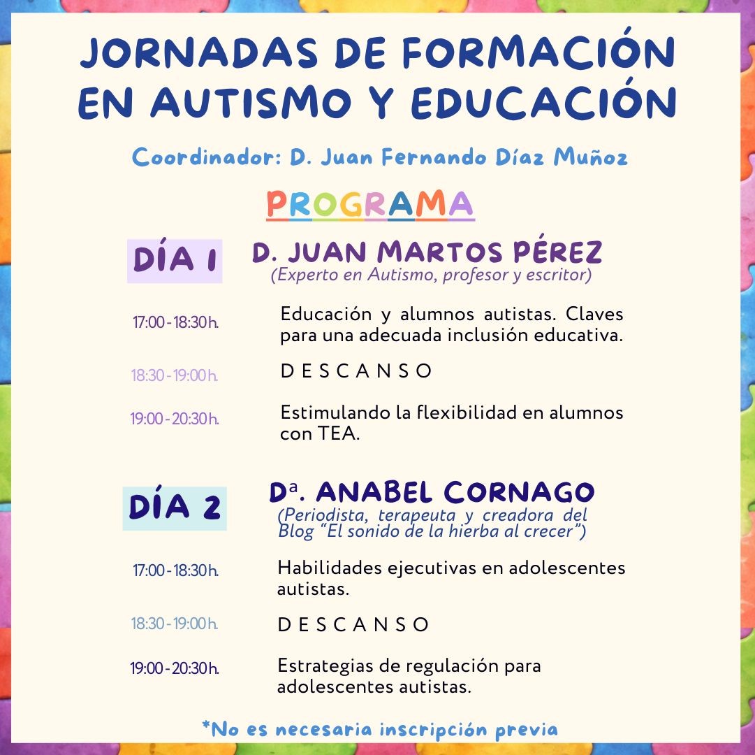 Jornadas de formación en autismo y educación 25 y 26 de marzo de 2026 17:00 a 20:30 horas Aula 10 #UNEDMelillaTwitter